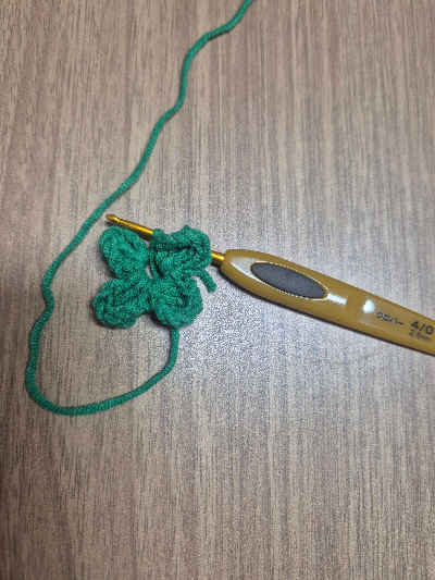 초록색 실을 꺼내어 작은 클로버를 떠보세요.